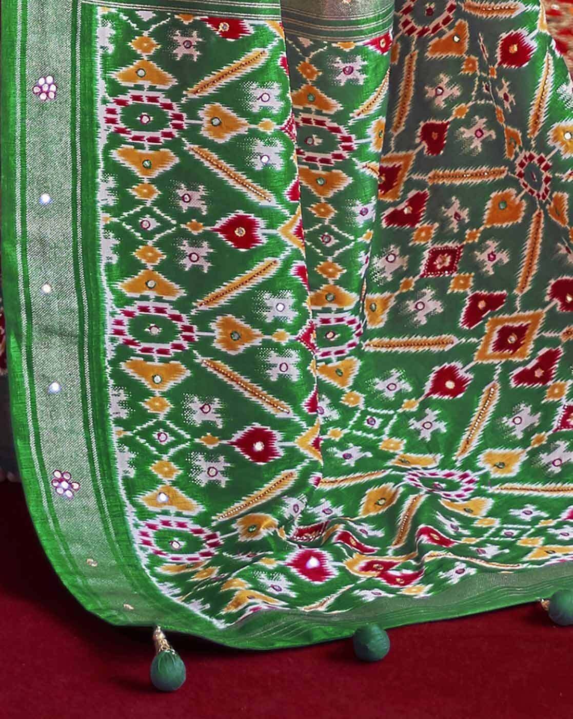 Ikat Print Saree with Contrast Zari Border